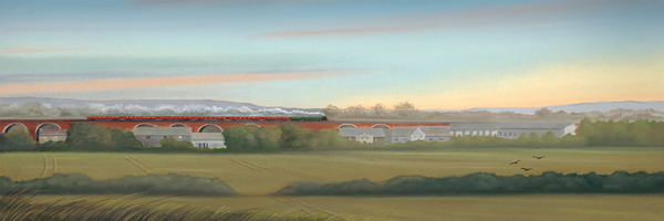 The imposing 2,280 feet long railway viaduct at Yarm was built between 1849 and 1851 for the Leeds Northern Railway Company. It comprises seven million bricks, and has 43 arches, with the two that span the River Tees being skewed and made of stone. The viaduct towers above and runs parallel to the towns High Street. I have used some artistic license to place 'The Flying Scotsman' crossing the viaduct.