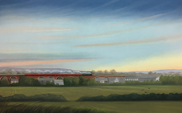 The imposing 2,280 feet long railway viaduct at Yarm was built between 1849 and 1851 for the Leeds Northern Railway Company. It comprises seven million bricks, and has 43 arches, with the two that span the River Tees being skewed and made of stone. The viaduct towers above and runs parallel to the towns High Street. I have used some artistic license to place 'The Flying Scotsman' crossing the viaduct.